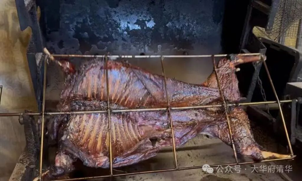 活动当天最受关注的,自然是现场现烤的烤全羊。从慢火烘烤到正式上桌,整只羊香味十足、很有“仪式感”,也很快成为当天大家拍照最多、讨论最多的“主角”。