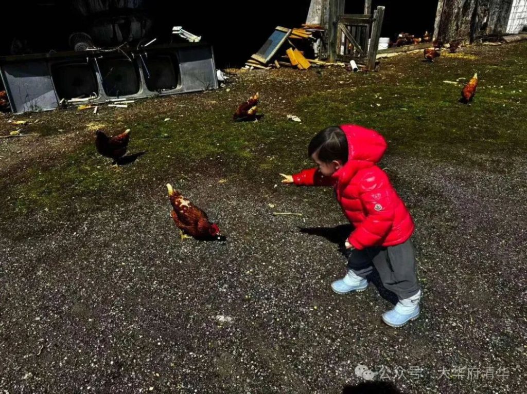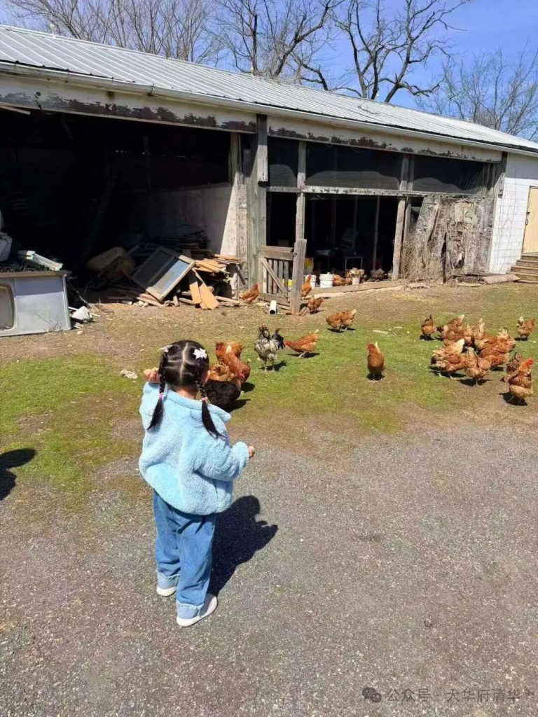 孩子们玩得很开心:喂鸡、放风筝、到处探索